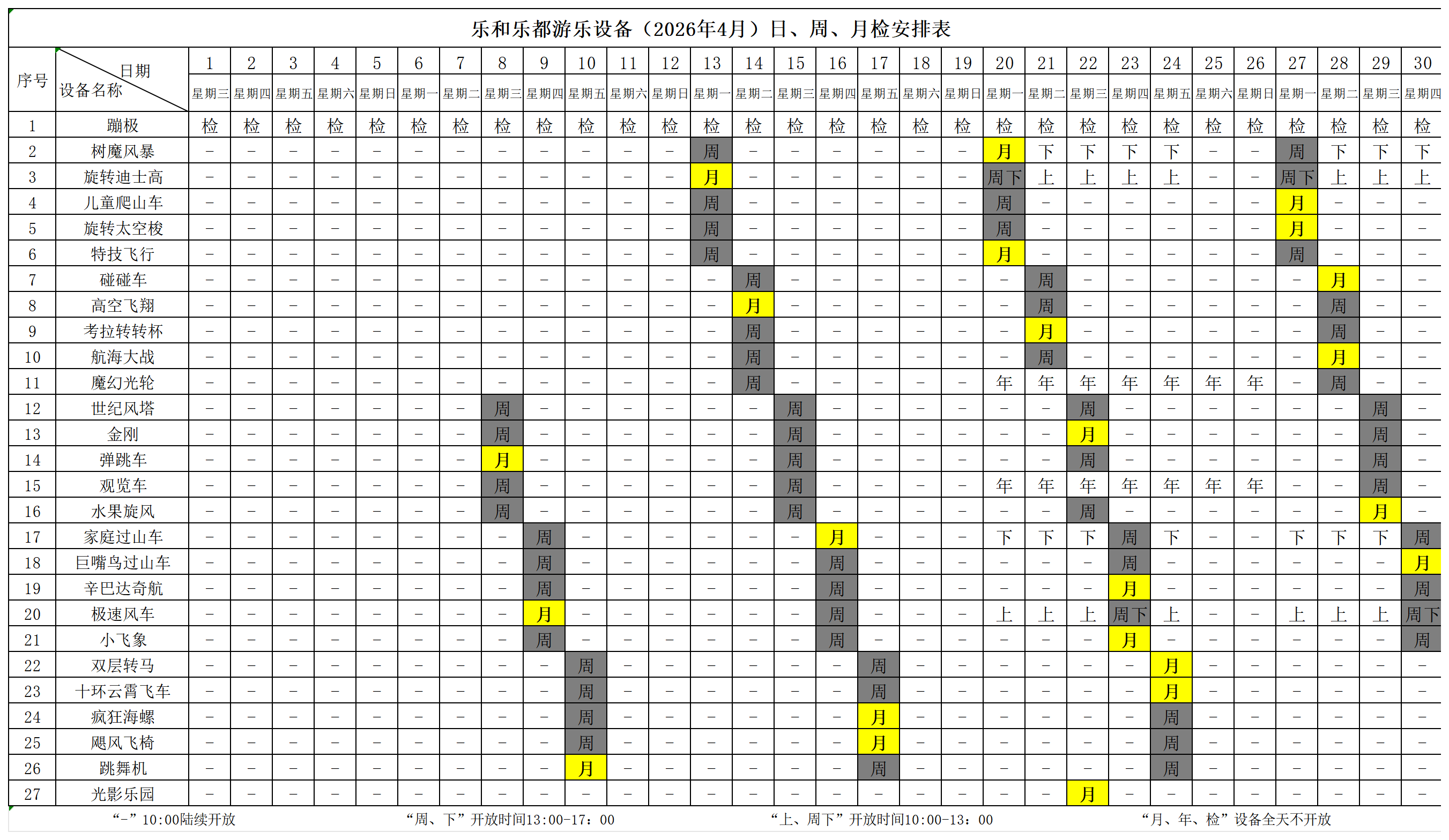 三、游乐设备安排表