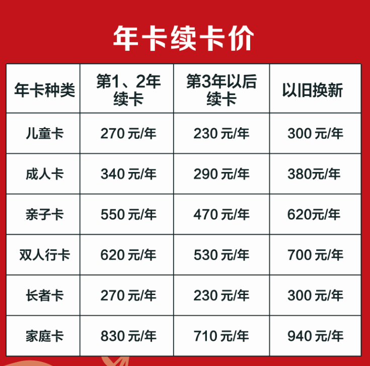 备注:淡季时间指平时非法定节假日,旺季时间指法定节假日及暑期。